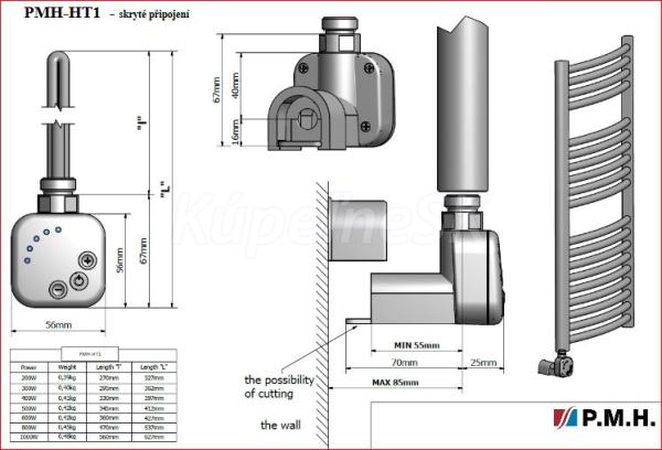 P.M.H. HT1 - elektrická vykurovacia tyč ,200 W, lak čierna