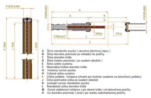 Alternatívne hrúbky (P) stavebných puzdier Štandard do murovanej priečky 82 mm = dokončená priečka 100 mm a hrúbka do SDK 73 mm = dokončená priečka 100 mm.