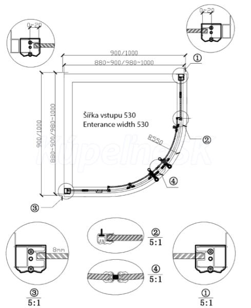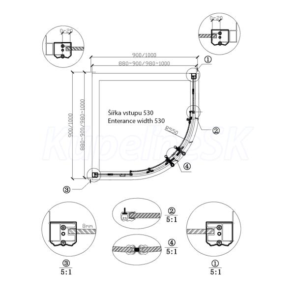 >> Sprchové kúty a žľaby >> Štvrťkruhové kúty >> Gelco ANTIQUE štvrťkruhový sprchový kút 100x100x190 cm Číre/Bronz R550 2x Posuvné dv.