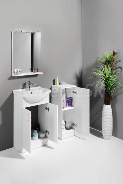 Kúpeľňový nábytok z bieleho lamina, najjednoduchšie riešenie pre Vašu kúpeľňu. Ponuka umývadlových skriniek v 4 rozmeroch v šírkach od 50 cm do 65 cm v kombinácii s niekoľkými variantmi doplnkových skriniek ponúka priaznivé usporiadanie nábytku takmer do každej kúpeľne za najlepšiu cenu.