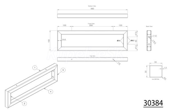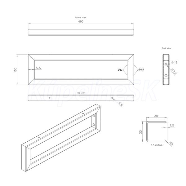 >> Umývadlá >> Príslušenstvo umyvadlá >> Sapho Uzavretá konzola 490x150x30mm, brúsená nerez, 1 kus 30384