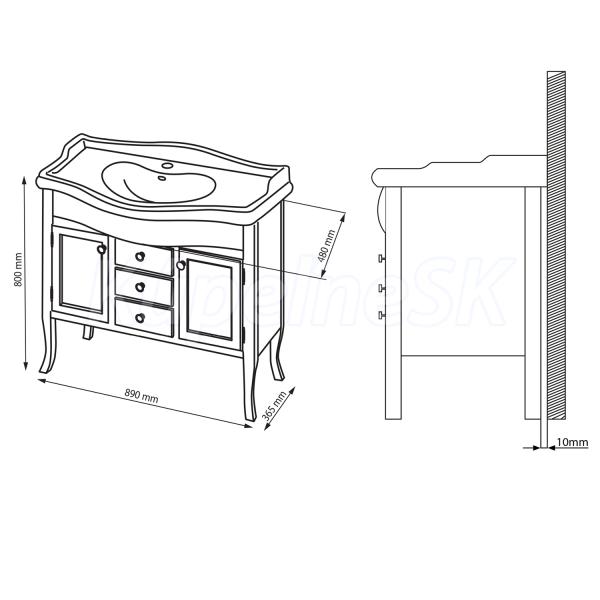 ZnačkaSAPHO SériaRETRO Rozmer89x80x48 cm Šírka890. mm Výška800. mm Hĺbka480. mm FarbaBiel