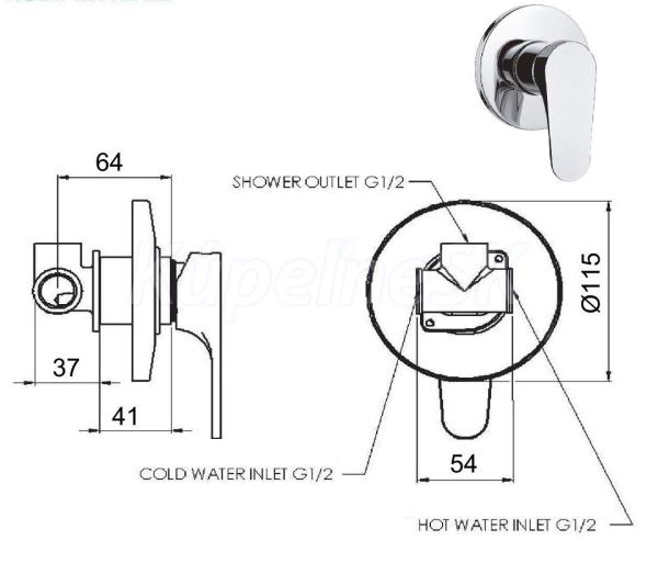- Sprchová či vaňová batéria podomietková, bez príslušenstva, bez prepínača