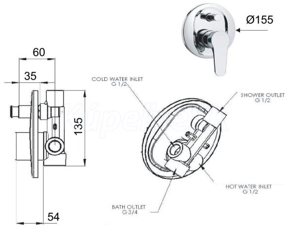 • Sprchová či vaňová batéria podomietková, bez príslušenstva, s prepínačom