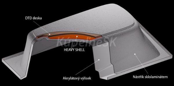 Akrylátové vane a vaničky sú vyrábané zo značkového akrylátu. Na rozdiel od koextrudovaných akrylátových dosiek, ktoré majú mäkkší povrch a menšiu chemickú odolnosť, sa vyrába liatím. To mj. znamená, že je prefarbený v celej hrúbke, plne stálofarebný, neporézny a s vysokou povrchovou pevnosťou. Má hladký povrch s minimálnou možnosťou pošmyknutia a dobre tlmí hluk dopadajúcej vody.