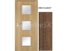 INVADO SET Rámové dvere ROMA 4 presklené, fólia, Orech Klasický B597 + zárubeň