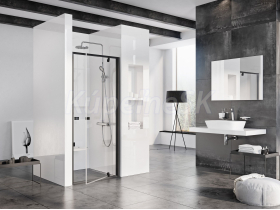 Jednodielne sprchové dvere Pivot v čiernom vyhotovení a s výplňou z číreho skla s ochrannou vrstvou Ravak AntiCalc®. Otočný pivotový systém otvárania. Otočiteľný výrobok pre ľavý aj pravý variant. rozmer: 80 cm typové vyhotovenie: otočiteľný výrobok (L/P) farebné vyhotovenie: čierna (rám, úchytky a pánty vo vyhotovení čierne) výplň z bezpečnostného skla: 6 mm; Transparent výška výrobku: 190 cm Výrobok sa skladá z jedného rovného otočného dielu, ktorý tvorí dvere. Otočením výrobku o 180° získate ľavý alebo pravý variant otvárania dverí. Montuje sa do obloženého rohu kúpeľne (ideálne do vymurovanej niky alebo v kombinácii s pevnou stenou PPS) na vaničky Ravak Aneta, Angela, Perseus, Perseus Pro, Perseus Pro Flat, Perseus Pro Chrome, Gigant Pro, Gigant Pro Flat, Gigant Pro Chrome alebo priamo na podlahu so zabudovaným odtokovým žľabom či podlahovým vpustom. Kombináciou s dvoma pevnými stenami typu PPS vytvoríte sprchový kút v tvare „U“. Použitím rozširovacieho profilu PNPS možno výrobky rozšíriť o 20 mm, preto sa dokonale prispôsobia stavebným nerovnostiam až o 4 cm na každej strane. Pred montážou výrobku venujte pozornosť technickým dokumentom v záložke "Na stiahnutie", číslica uvedená v názve konkrétneho výrobku, neudáva jeho presný rozmer.