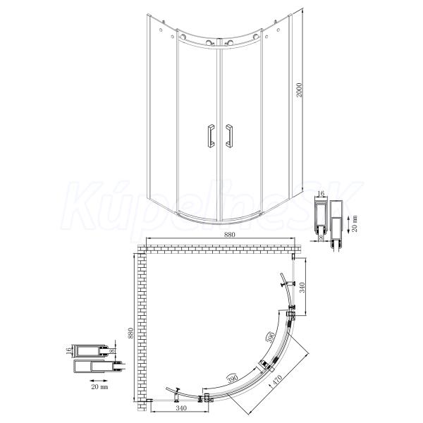 Gelco DRAGON štvrťkruhový sprchový kút 90x90x200 cm Číre/Chróm R550 2x Posuvné dv.