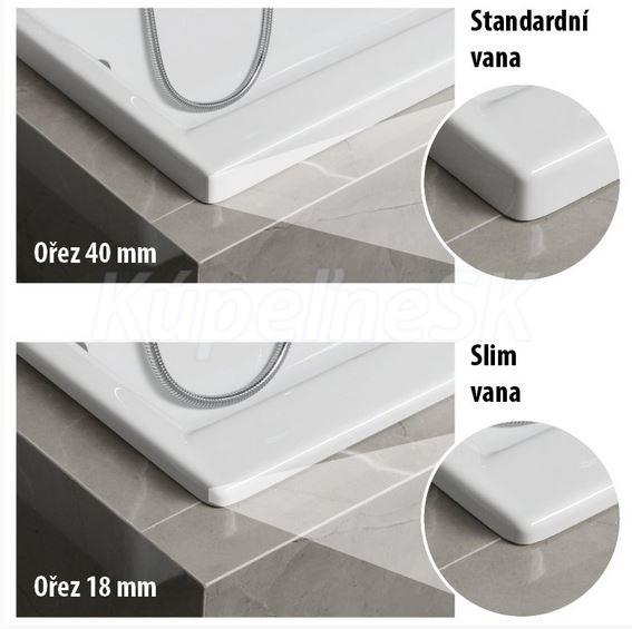 Vaňa má oproti štandardným vaniam výšku hrany okraja iba 18 mm. Pri obmurovanie tak pôsobí estetickejšie. Nemožno ju inštalovať s obkladovým panelom.