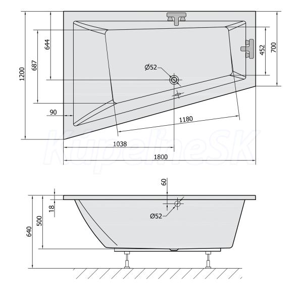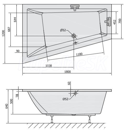 Polysan TRIANGL L SLIM asymetrická vaňa 180x120x50cm, biela