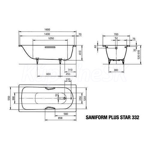 Kaldewei SANIFORM PLUS STAR 332 1600x700x400 Obdĺžnikové vane Kaldewei BW SANIFORM PLUS STAR 332, 1600x700x400 alpská biela, P