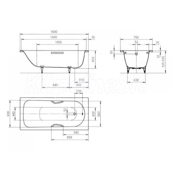 >>  Vane + príslušenstvo  >>  Oceľové vane  >>  Kaldewei Obdĺžniková vaňa SANIFORM PLUS STAR 333, 1600x750x400, CAS, alpská biela, P