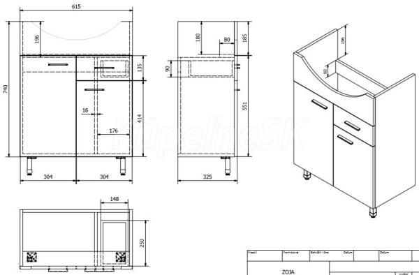 Skrinka pod umývadlo 2x dvierka 1x zásuvka chrómové úchytky Umývadlo nie je súčasťou skrinky. Možné inštalovať s ,nožičkami, ktoré je nutné objednať samostatne. Nábytok je dodávaný v ,zmontovanom stave, pripravený na okamžitú inštaláciu. Nábytok inštalujte na rovnú stenu, nevystavujte ho trvalej vlhkosti a styku s ,vodou. Po použití kúpeľňu riadne odvetrajte. Proti prípadnému zatekaniu do skrinky použite silikónový tmel. Náhrada za vyradený produkt 51065. ZOJA - nová generácia kúpeľňového nábytku. Moderný dizajn umývadiel je zladený s ,ostrými hranami skriniek a podčiarknutý elegantnými plochými úchytkami v ,chrómu. Umývadlové skrinky sú závesné, ale niektoré z ,nich možno opatriť aj podpernými nohami pre jednoduchšiu inštaláciu. Skrinky sú ponúkané v ,prevedení lesklá biela a v ,matnom dekore mali wenge. Kolekciu možno samozrejme kombinovať so širokou ponukou doplnkových skriniek, zrkadiel a galériek. Nevystavujte nábytok trvalej vlhkosti a styku s ,vodou. Kúpeľňu vždy riadne odvetrajte. Pri skrúteniu korpusu skrinky môže dôjsť k poruche funkcie aretačnej mechanizmov. Proti prípadnému zatekaniu vody do skrinky použite silikónový tmel.