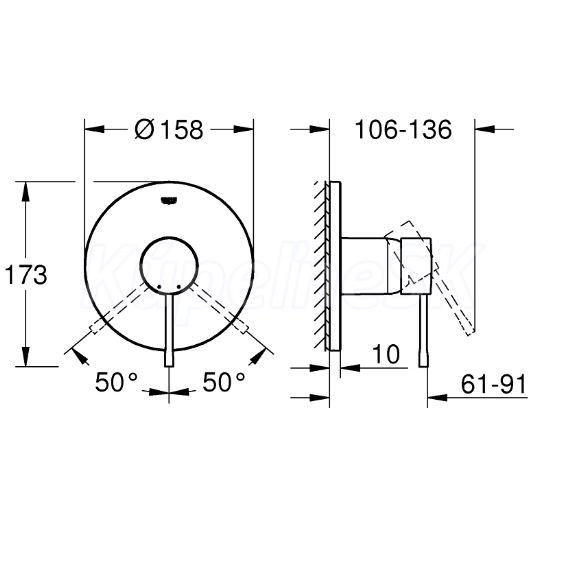 kování GROHE QuickFix s krytým těsněním a upevňovacími prvky