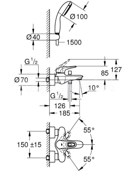 >>  Batérie vodovodné  >>  GROHE  >>  Eurostyle  >>  GROHE 3359230A EUROSTYLE Páková vaňová batéria, Chróm