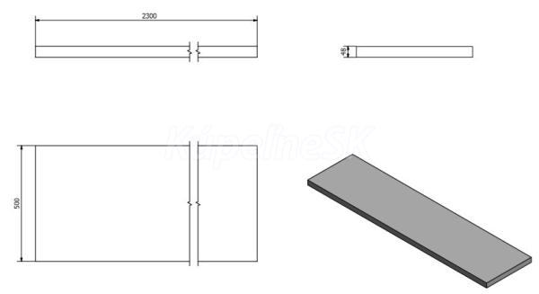 ZnačkaSAPHO SériaDOSKY AVICE Rozmer230x49,5 cm Šírka2300. mm Výška50. mm Hĺbka495. mm Far
