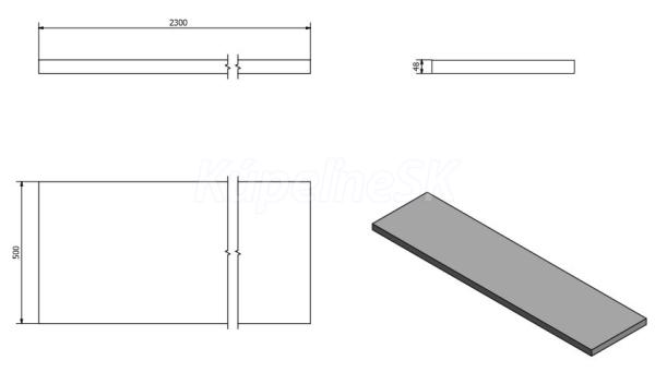 ZnačkaSAPHO SériaDOSKY AVICE Rozmer230x49,5 cm Šírka2300. mm Výška50. mm Hĺbka495. mm Far