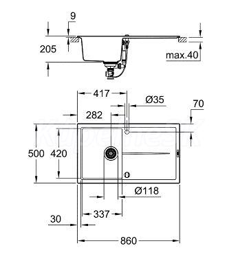 GROHE K400 31640AT0 Kuchynský drez 860x500 s automatickým odtokom,granitová sivá