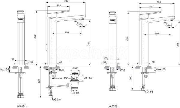 >>  Batérie vodovodné  >>  IDEAL STANDARD batérie  >>  Tonic II  >>  Ideal Standard A6328AA Tonic II umývadlova batéria (5l/min) na vysokom podstavci, s odtk.