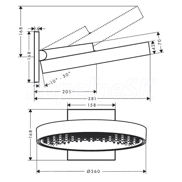 - rameno sprchy vertikálne nastaviteľné o 10-30°
