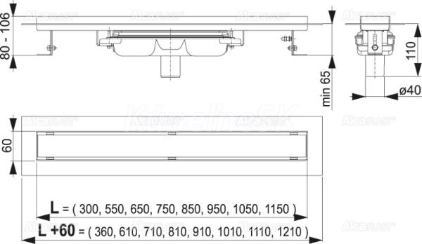 ALCA (Alca Plast / Alca Drain) Professional Low-Podlahový žľab s okrajom pre plný rošt, zvislý odtok APZ1106-1050