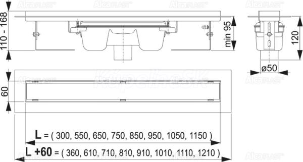 ALCA (Alca Plast / Alca Drain) Professional-Podlahový žľab s okrajom pre plný rošt, zvislý odtok APZ1006-950