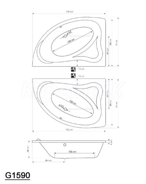 >> Vane + príslušenstvo >> Akrylátové-Rohové asymetrické vane >> Aqualine ORAVA vaňa 150x90x38cm bez nožičiek, ľavá, biela G1590