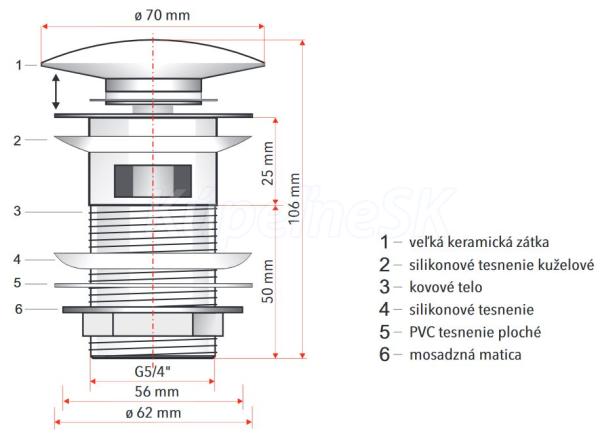 Aquatek Výpusť umývadlová CLICK/CLACK G5/4" s prepadom, keramická zátka biela
