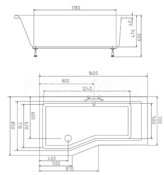 >>  Vane + príslušenstvo  >>  Akrylátové-Rohové asymetrické vane  >>  Polysan VERSYS L asymetrická vaňa 160x84x70x47cm, biela 14611