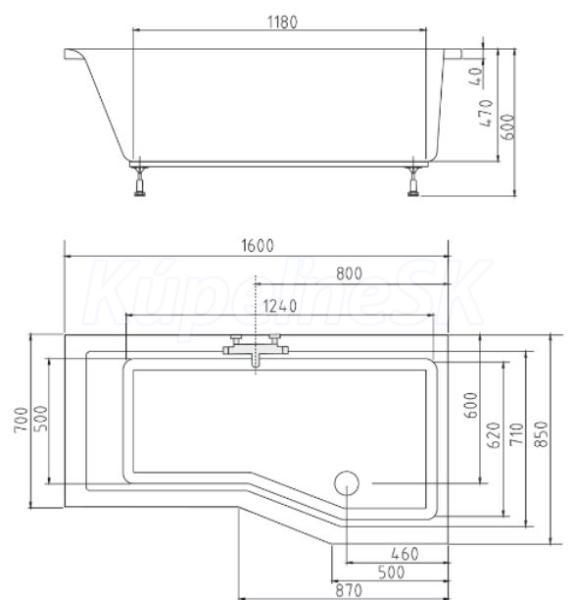 Polysan VERSYS R asymetrická vaňa 160x84x70x47cm, biela 15611
