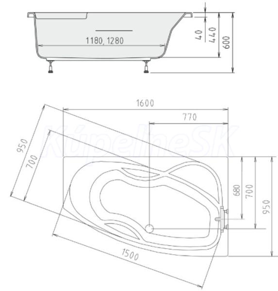 Polysan MAMBA R asymetrická vaňa 160x95x44cm, biela 28111
