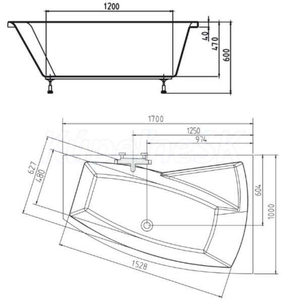 Polysan EVIA R asymetrická vaňa 170x100x47cm, biela 22611