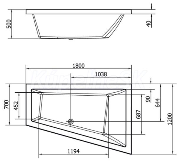 Polysan TRIANGL L asymetrická vaňa 180x120x50cm, biela 19611