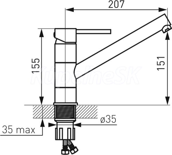 kategória distribúcie Novaservis: Vodovodní baterie | Dřezové baterie stojánkové. Prvotriedna, odolná kartuš 35 mm . s 5 ročnou zárukou. . Kvalitné chrómové prevedenie. Stojanková drezová batéria s otočným ramenom a dĺžkou 207 mm. Súčasťou batérie sú prívodové hadičky.