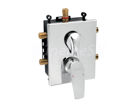 kategória distribúcie Novaservis: Vodovodní baterie | Podomítkové boxy. Kvalitná a odolná, keramická kartuš KEROX 40 mm . so 7 ročnou zárukou. Prvotriedne chrómové prevedenie. Podomietková batéria s boxom pre 3 vývody vody a s keramickým prepínačom. Box je dodávaný spolu s krytom páky a prepínača.