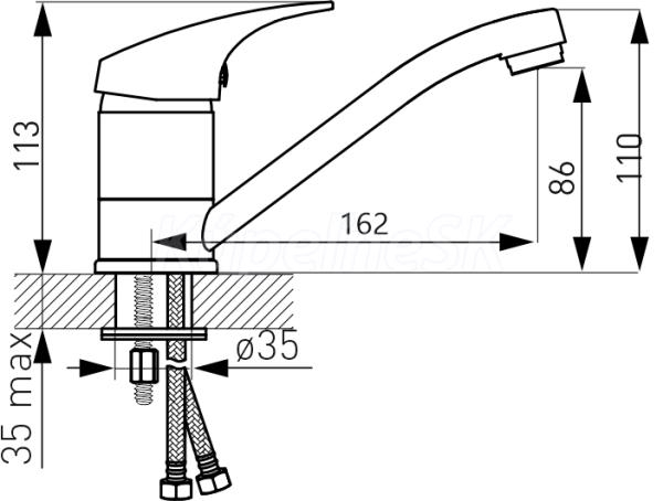 kategória distribúcie Novaservis: Vodovodní baterie | Dřezové baterie stojánkové. Prvotriedna, odolná kartuš 40 mm . s 5 ročnou zárukou. . Kvalitné chrómové prevedenie. Stojanková drezová batéria s otočným ramenom a dĺžkou 162 mm. Súčasťou batérie sú prívodové hadičky.