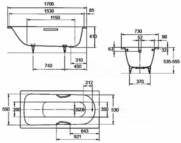 Kaldewei SANIFORM PLUS STAR 334 1700x730x400 Obdĺžnikové vane Kaldewei BW SANIFORM PLUS STAR 334, 1700x730x400 AS, alpská biela, P