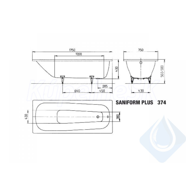 >>  Vane + príslušenstvo  >>  Oceľové vane  >>  Kaldewei Obdĺžniková vaňa SANIFORM STAR 338, 1750x750x420, alpská biela