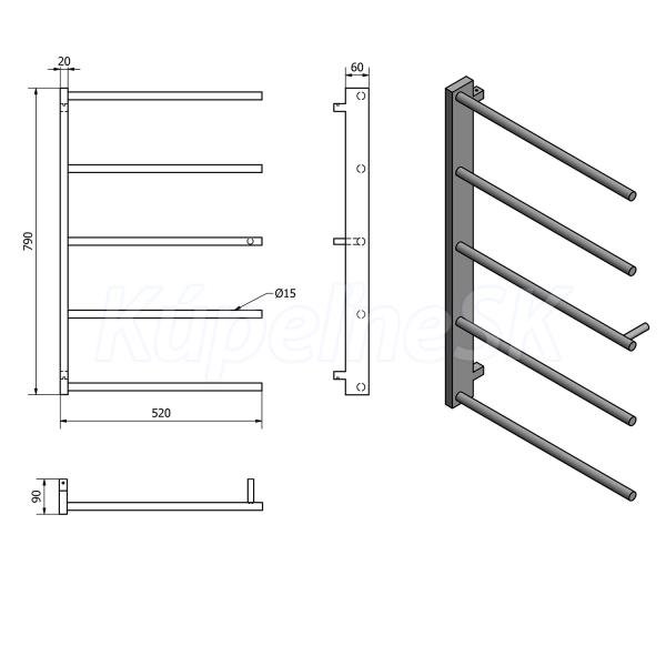 Sapho SLICE Sušiak uterákov 520x790mm, čierna mat
