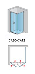 Sprchové dvere dvojkrídlové obojstranne otvátateľné do niky, alebo sprchového kúta (kombinácia s bočnou stenou CAT2), prípadne vstup trojstranného sprchového kúta (kombinácia s dvomi bočnými stenami CAT2).