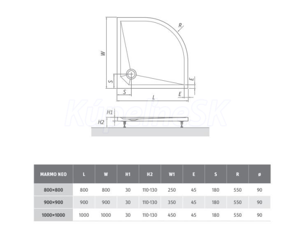 >> Sprchové vaničky >> Vaničky Liaty mramor sprchové >> Štvrťkruhové vaničky liatymramor >> Roth Marmo Neo Round Vanička sprchová štvrťkruhová 100x100 liaty mramor, Biela