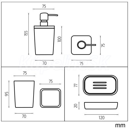 >>  Kúpeľňové doplnky  >>  Dávkovače na mydlo  >>  Nimco BADU SET Dávkovač a Mydelnička a Pohárik na kefky, mat. Polyresin, BA 28000SET-05 BA