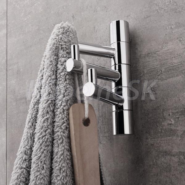 Věšák do koupelny na stěnu se třemi háčky, otočný, chrom je skvělým doplňkem do koupelny. Spojení jednoduchosti s čistými liniemi a tvary přesně vystihuje sérii koupelnových doplňků BORMO. Prostý design této řady v sobě skloubil nadčasový vzhled, spolu s funkčností každého výrobku. BORMO nabízí prostředí plné harmonie a jednoduchosti, které z vaší koupelny vykouzlí místo, kde se budete cítit báječně a kde je ralaxace zaručena.