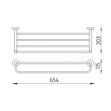 Police na ručníky kombinovaná s madlem pro zavěšení ručníků. Broušená nerez.