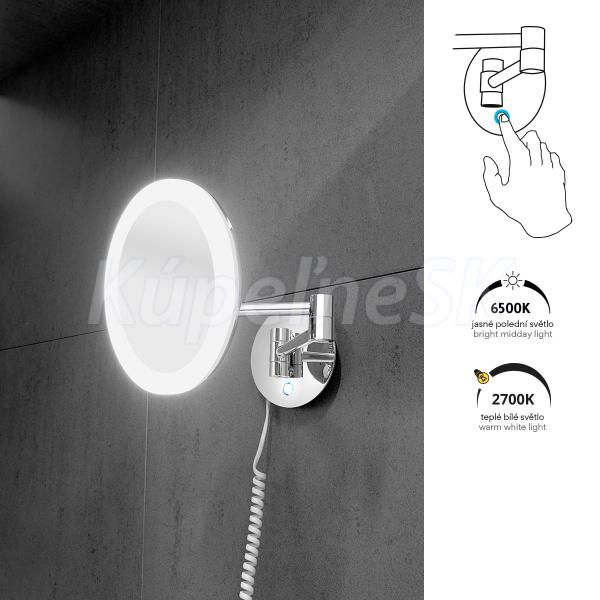 LED zvětšovací zrcátko s dotykovým podsvíceným senzorem s nast.teplotou chromatičnosti 6500 / 2700 K. Zvětšení 5x.