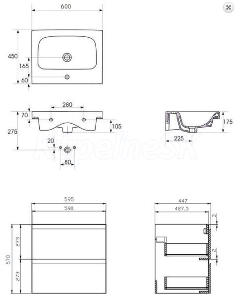 Cersanit Set 976 MODUO 60 skrinka + umývadlo 45, v demonte, Šedá lesk S801-222-DSM