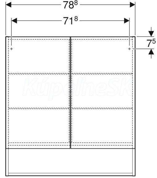 Zrkadlová skrinka Geberit Selnova Square s dvomi dvierkami a štyrmi sklenenými vkladacími poličkami