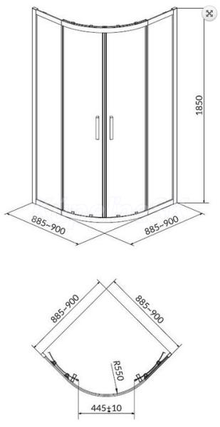 Cersanit S158-005 BASIC Štvrťkruhový sprchový kút 90x90x185cm, Chróm, Číre sklo