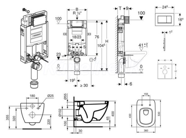 - predstenový inštalačný prvok Geberit Kombifix (110.302.00.5), so splachovacou nádržkou pod omietku