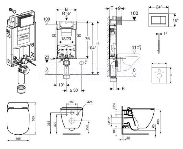 - predstenový inštalačný prvok Geberit Kombifix (110.302.00.5), so splachovacou nádržkou pod omietku Sigma 12 cm